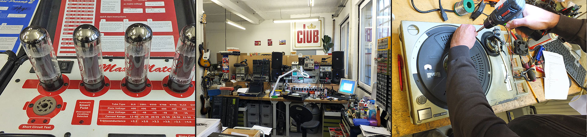 Wir reparieren Ihre defekten Digital- und Analogendstufen, Digital- und Analogmischpulte, DJ-Equipments aller Art, 19" Peripherie, Röhrenverstärker, Bühnenelektronik & PA's.